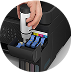 An EcoTank printer is fundamentally different to most printers. It features a large ink tank that you fill with the included ink bottles instead of cartridges. The high-capacity ink tanks reduce number of ink refills, contributes to the reduction of environmental impact.