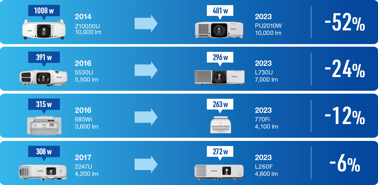 Epson's smaller and lighter high-lumens projectors offer significant environmental benefits, including low power consumption and reduced packaging requirements.