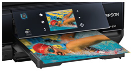 The Expression Photo XP-850 offers the best of both worlds: powerful performance and a sleek compact design, Featuring an intuitive touch-panel display, Epson Connect, fast print speeds, fax, two-sided printing and dual paper trays for unsurpassed productivity, as well as Epson Claria Photo HD Ink with six individual cartridges.