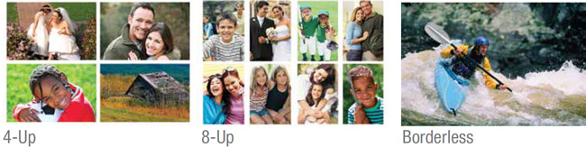 | True BorderFree™ printing is available for the following media sizes: 4"x6", 5"x7" and A4. Media types recommended: Premium Glossy Photo paper A4, 4"x6" and 5"x7", Matte Paper - Heavyweight. BorderFree prints are media dependent. |