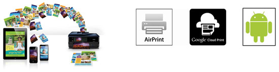 Easily print documents, photos, e-mails and web pages wirelessly from your iPad, iPhone, tablet, smartphone or computer2. And print from the comfort of the couch, the office or even across the globe. Use Epson Email Print, the EPSON iPrint mobile app, Apple AirPrint or Google Cloud Print to print and share from anywhere and even scan documents and save them to the cloud.