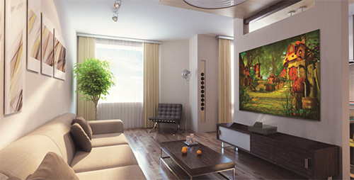 Transform your wall with life-size images instantly with the EH-LS500B. Place the projector just a half meter from the wall and get sharp, full HD resolution up to 130 inches — with no long cables, no shadows, and no glare — for a modern entertainment solution that won’t detract from your decoration.