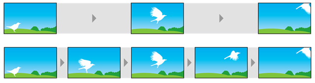 A movie is a series of still frames, shown in quick succession. Traditional movies are shot at 24 frames per second (fps). However, in some cases, fast-moving objects may have moved too fast to be captured on film, so they appear to jump from one part of the screen to another. This effect is called motion judder. In order to reduce motion judder, Epson has created FineFrame interpolation technology, which looks at the frames before and after an action, and creates an interpolated frame, halfway between two existing frames. As a result, a smoother motion is perceived by the viewer.