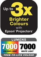 Brilliant image quality requires high colour brightness (colour light output), and Epson® 3LCD projectors have 3x Brighter Colours than leading competitive projectors*.