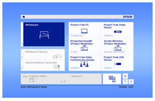 Get up and running in a snap with an intuitive, user-friendly home screen. Select the content source and easily access frequently-used functions such as keystone correction, volume control, Split Screen and more.