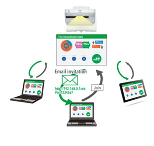 Share your whiteboard content instantly, during your meeting, with up to 15 participants connected to the same network. Participants can join the session using a tablet, smartphone or computer, via a web browser, or another Epson MeetingMate. No special software or app is required. Different meeting modes provide various options for full collaboration or content viewing only. Participants can also save copies of the meeting notes onto their devices.