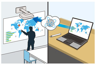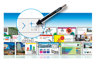 Transform traditional dry-erase whiteboards, plain walls and even tables into digital surfaces. Just pick up the pen and start writing. Or, use your finger-touch-enabled interactivity - to draw, share and interact with intuitive and familiar gestures. Add pages, or insert shapes and images. When you’re done, share your notes via the email, print or save functions - all without a computer.