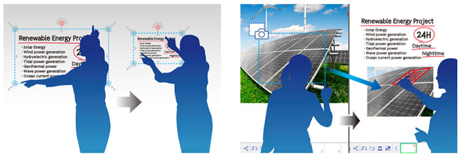 Any image on the screen can be resized and moved as if it were an object. So even if there is no writing space on the screen, written contents can be shrunken down to make room for new annotations.