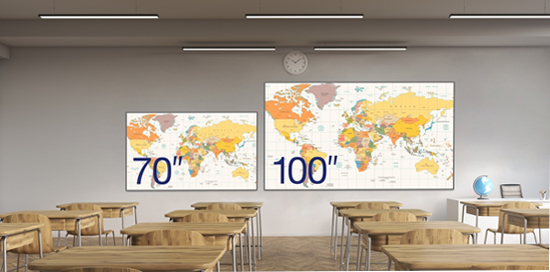 While conventional panels are limited to a pre-determined height and width, projectors have no such constraints. With the image size expanding up to 300”, your audience can easily read and understand the information you’re sharing.
