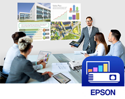 Wirelessly display content from your iOS or Android mobile devices as well as PCs, including Chromebook with the free Epson iProjection App. Easily share information on the big image from up to 4 connected devices simultaneously. Just turn on the projector, use the Epson iProjection app to scan the on-screen QR code, and share content on the big screen. This free application allows you to travel light and present from your mobile device.