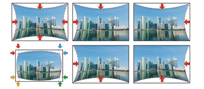 Using arc correction, you can adjust each side of a projected image in an arch or barrel-shaped way, making it easier than ever to get a perfectly rectangular image.