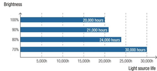 †20,000 hours is the estimated laser light source life when used in Normal Mode. Actual hours may vary depending on mode and usage environment. The projector has a standard limited warranty of 5 years.