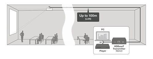 Cutting-edge HDBaseT technology means just one single CAT-5/6 cable carries full HD video, audio, network and control commands up to 100 metres to accommodate large venues. No need for additional cables, signal repeaters or added labour.