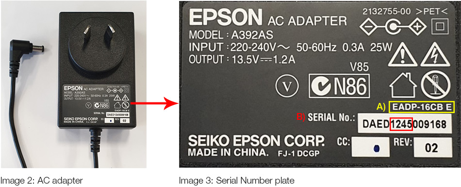 Customer safety and satisfaction are always Epson's top priority. If you have an AC adapter in the affected range Epson will exchange it with a new AC adapter, free of charge.