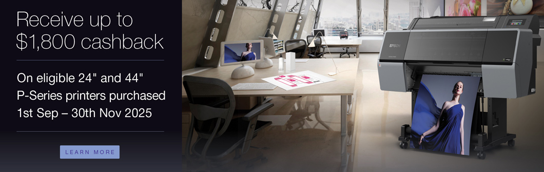 *Note this Epson SureColor 24" & 44" P-Series printer cashback promotion, ("Promotion") is for customers purchasing new eligible printers supplied through Epson Australia Pty Ltd, and purchased from an Epson Australia ("Epson") authorised large format reseller, dealer, or retailer located within Australia only. It specifically excludes printers purchased on Epson websites, or from outside of Australia, or products already claimed on previous promotions. Giveaway units, second hand, demonstration, ex-demonstration, factory seconds, and other damaged products are not eligible for this Promotion.