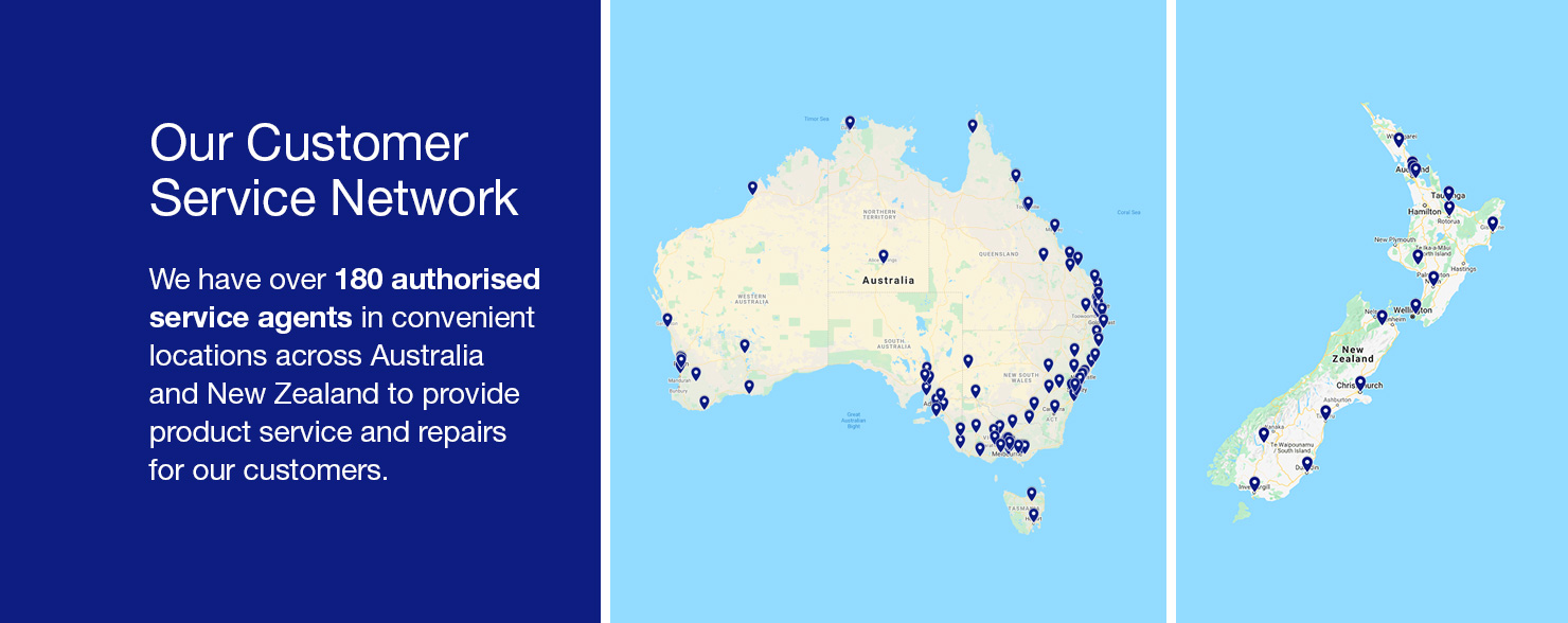 We have over 180 authorised service agents in convenient locations across Australia and New Zealand to provide product service and repairs for our customers.