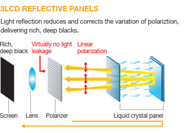 • 3LCD Reflective Technology – Light reflection reduces and corrects the variation of polarization, delivering rich, deep blacks