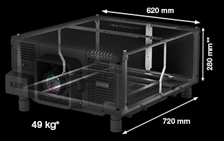 A newly developed liquid cooling system maintains optimal temperatures of key optical elements. The inorganic LCD panels, inorganic phosphor wheel and laser light source stays cool no matter how the projector is installed. This efficient cooling system helps to achieve a compact body size