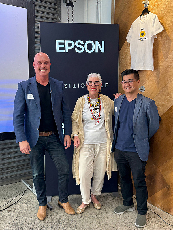 (l-r) Epson A/NZ MD Craig Heckenberg, OzHarvest founder Ronni Kahn and Citizen Wolf co-founder Eric Phu