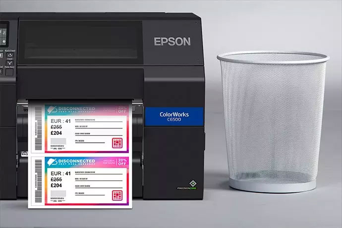 Now you can easily print high-quality, customised colour labels, tickets and tags in-house, as and when you need them. Epson on-demand inkjet colour label printers eliminate the traditional problems of thermal overprinting. No more delays, disruption, waste or inconvenience. No more pre-printed label inventory, production downtime, lost orders or late shipments.