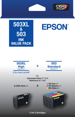 Pack contains: 503XL Black ink cartridge + 3 x 503 Std colours ink cartridges - Cyan, Magenta, Yellow.