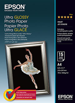 Ultra Glossy Photo Paper is the standard for extraordinary images. This paper is ideal for framing and for long lasting, professional quality prints. It has an ultra smooth and bright white finish, and is Epson's heaviest weight consumer-level glossy paper.