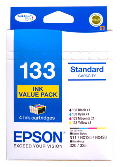 Pack contains: 4 x 133 Standard Capacity DURABrite Ultra Individual ink cartridges (Black, Cyan, Magenta, Yellow).