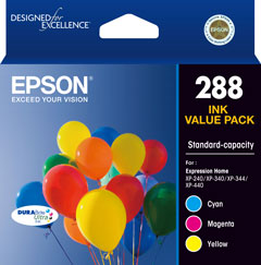 Exclusive to Epson, DURABrite Ultra ink is a 4 colour pigment based ink technology that delivers brilliant, ultra sharp detail on plain and specialty papers. These fast drying inks deliver durable prints that are water, fade and smudge resistant and highlighter friendly too.Pack contains: 3 x 288 Std Capacity DURABrite Ultra Individual ink cartridges (Cyan, Magenta, Yellow).