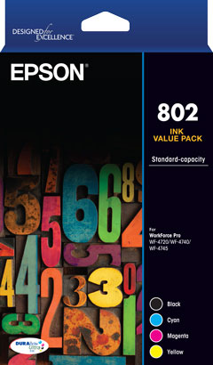 Exclusive to Epson, DURABrite Ultra ink is a 4 colour pigment based ink technology that delivers brilliant, ultra sharp detail on plain and specialty papers. These fast drying inks deliver durable prints that are water, fade and smudge resistant and highlighter friendly too.Pack contains: 4 x 802 Std Capacity DURABrite Ultra Individual ink cartridges (Black, Cyan, Magenta, Yellow).
