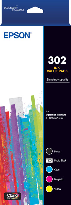 consists of 4 colour dye inks and 1 pigment black ink and is ideal for printing a mixture of documents and photos.Pack contains: 5 x 302 Std Capacity DURABrite Ultra Individual ink cartridges (Black, Photo Black, Cyan, Magenta, Yellow).
