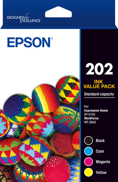 Pack contains: 4 x 202 Std Capacity individual ink cartridges (Black, Cyan, Magenta, Yellow).