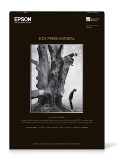 This premium media has been designed for museum quality photographic and fine art work. It is manufactured from 100% cotton that is acid, lignin and chlorine free with ph buffering for superb durability and print stability. Produced in cylinder-mould for an ultra-smooth finish, it features a coating that has been optimised for Epson UltraChrome pigment Inks. It has a natural white surface that does not contain any optical brightners and delivers beautiful tonal transitions with a wide colour gamut. It is particularly suited to soft colour photography.