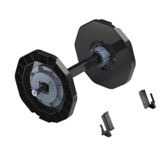 A4 media spindle for a Surelab. Can only be used in the lower draw. Supports 4”, 5”, 6”, 10” & 12” media rolls in addition to 210mm/A4. Does NOT support 8” media.