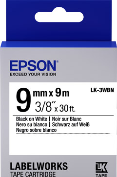 LabelWorks LK Tape Standard 9mm Black on White 9 meters - For LW-300, LW-400 & LW-600P