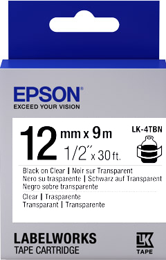 LabelWorks LK Tape Clear 12mm Black 9 meters - For LW-300, LW-400 & LW-600P