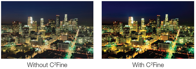 C2Fine offers smooth, uniform images with exceptional contrast for better image quality. Based on this new phase-compensation technology, light leakage is eliminated. When combined with the auto iris, this technology allows for contrast ratios of up to 70,000:1.