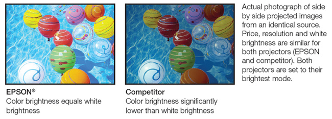 Brilliant image quality requires high colour brightness (colour light output), and Epson® 3LCD projectors have 3x Brighter Colours than leading competitive projectors*.